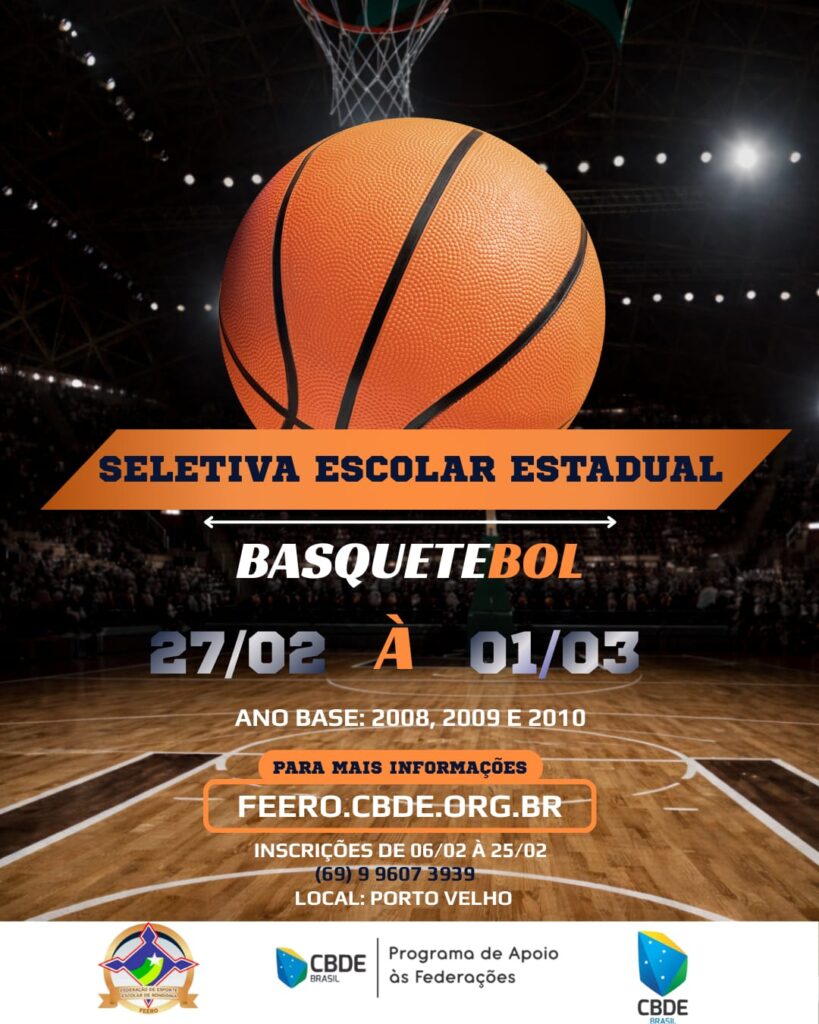 A Federação de Esporte Escolar de Rondônia – FEERO abre inscrições para a Seletiva Escolar Estadual de Basquetebol, destinada a estudantes-atletas de todo o estado de Rondônia.