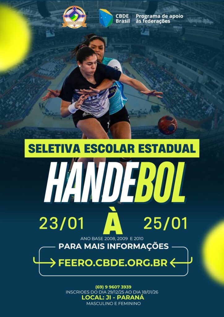 A Federação de Esporte Escolar de Rondônia – FEERO abre as inscrições para a Seletiva Escolar Estadual de Handebol, destinada a estudantes-atletas de todo o estado de Rondônia.